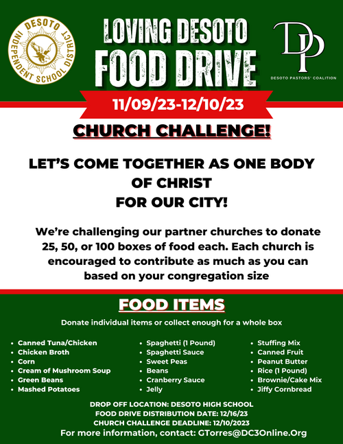 DC3 is participating in the church challenge to help support the Loving DeSoto Food Drive!